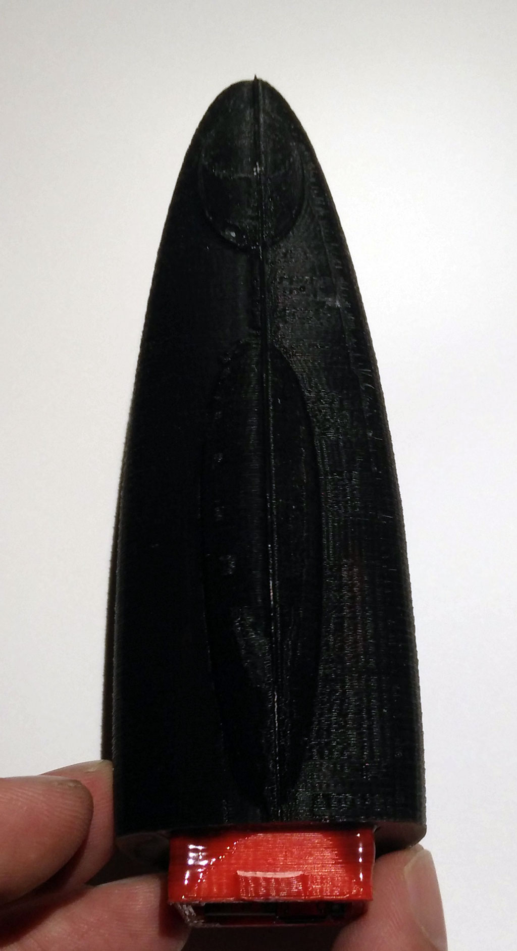 But a device like a classic big vibrator is still missing. So we designed the “fusion” which is approx 19cm long and up to 4+cm in diameter. It is called fusion as the case is made of silicone and 3d printed material (ABS).