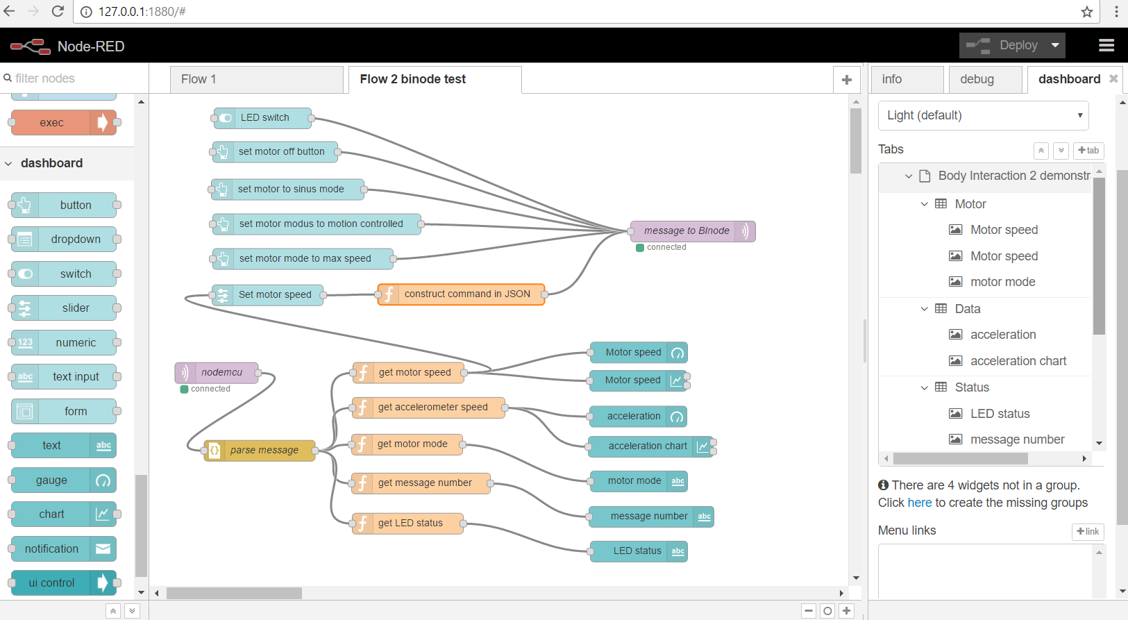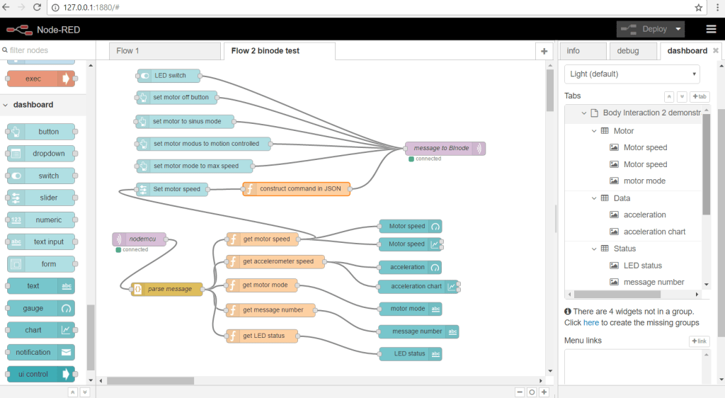 In the first blog post we explained the basics of controlling the body interaction 2 (BI2) vibrator development board using the concept of (virtual) pins. This time we want to send data from the BI2 board to the Blynk app. The BI2 has the MPU-9250 9DoF (9 Degrees of Freedom) IMU (Inertial Measurement Unit) sensor on board. This sensor is a combination of an accelerometer, gyroscope and magnetometer. Especially the accelerometer is important for motion detection. This could be used for controlling the vibrator as show with the body interaction 1 (BI1).