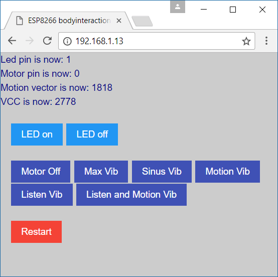 Now start a browser. Use the URL which the NodeMCU reported eg. http://192.168.1.12/