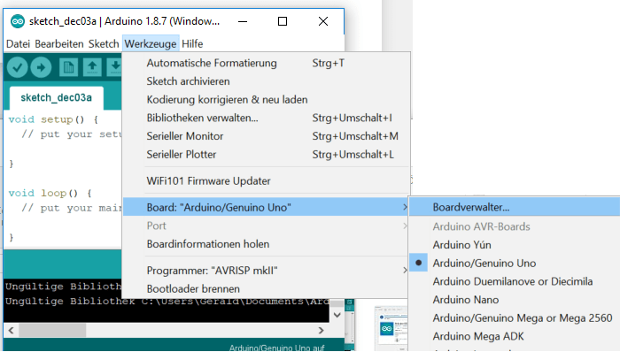 In the program code the library must be included and a MPU9250 sensor object must be defined. Finally we need several variables of the type float.